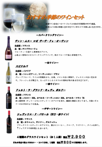 厳選された4種の秋のグラスワインをご提供いたします♪